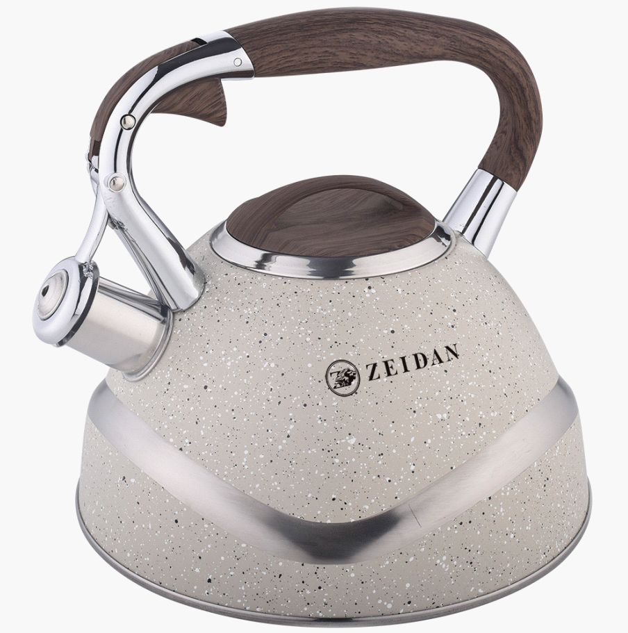 ZEIDAN Z4369 Чайник со свистком ZEIDAN Z4369 3,0 л , Чайник со свистком, 3,0 л, нержавеющая сталь, капсулированное индукционное дно, курковый механизм, внешнее покрытие антипригарное цветное покрытие, устойчивое к высоким температурам, ручка с покрытием "softtouch" под дерево. Подарочная упаковка.