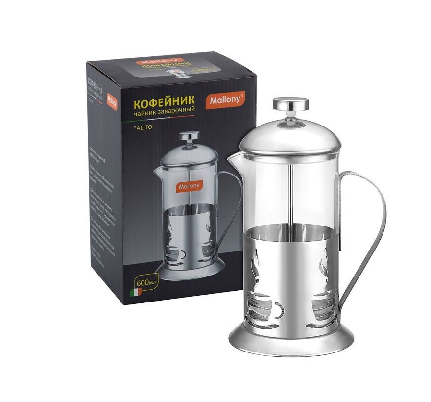 MALLONY Чайник/кофейник (кофепресс) NERO 600 мл из боросиликатного стекла, цвет ? черный (950066)