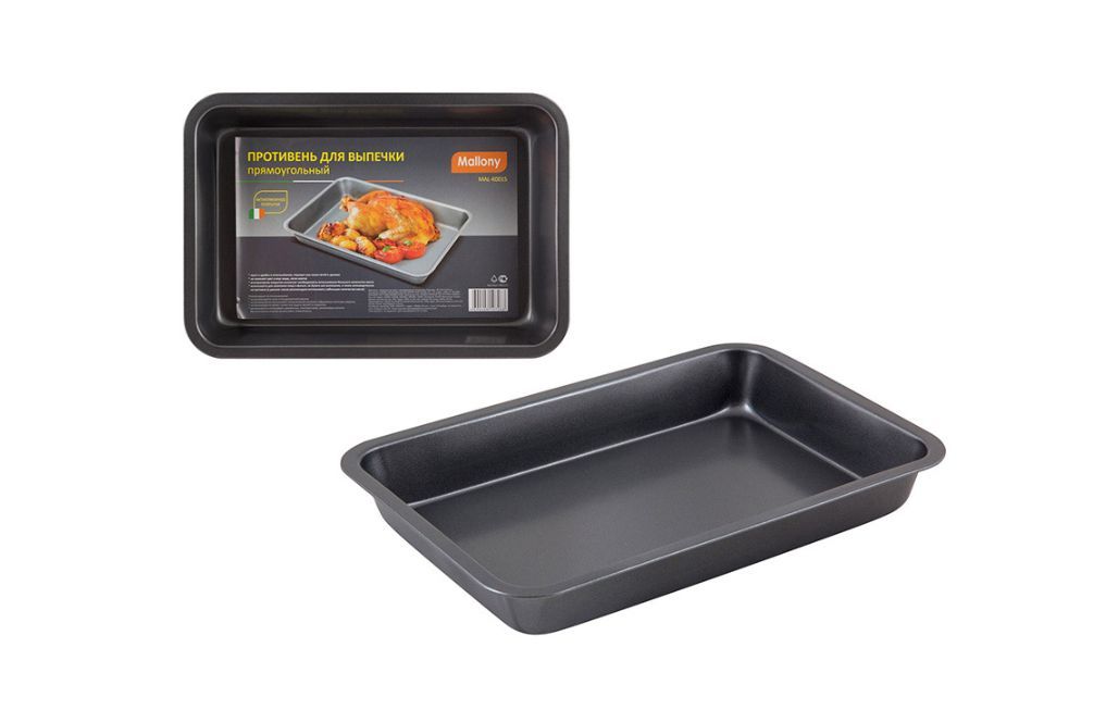 Размер: 28x19.5x3.8 см Высота: 3,8 см Толщина: 0,4 мм Внутр размер: 26x17 см Материал: углеродистая сталь с антипригарным покрытием Форма для запекания из карбоновой стали с антипригарным покрытием (2 слоя): * проста и удобна в использовании * не изменяет цвет и вкус пищи * легко моется * антипригарное покрытие исключает необходимость использования большого количества масла * подходит для мини печей и духовок * используется для запекания пищи в фольге, на бумаге для выпекания, а так же непосредственно в форме (в данном случае рекомендуем использовать небольшое колво масла) Упаковка: цветной вкладыш + пакет