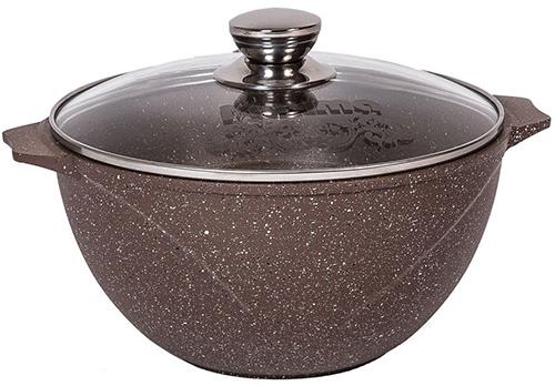 Казан для плова 7л. со стеклянной крышкой. Антипригарное покрытие Greblon Rough на водной основе без PFOA. Серия "Гранит brown". Подходит для всех типов плит, кроме индукционных. Можно использовать в посудомоечной машине. Ресурс более 15 000 циклов, толщина покрытия до 55 мкр. Толщина дна 5,56мм., толщина стенок 3,64мм. Покрытие Greblon Rough позволяет готовить с минимальным количеством масла, сохраняя вкусовые и полезные свойства продуктов. Литой толстостенный корпус не подвержен деформации, а утолщенное дно равномерно распределяет тепло по всей поверхности.