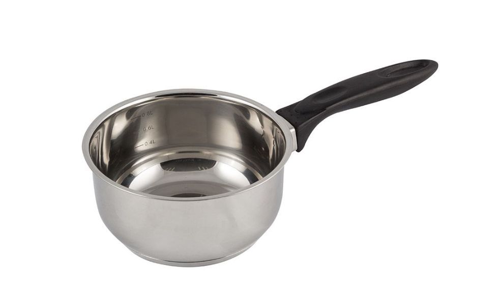 Ковш из нержавеющей стали с бакелитовой ручкой капсулированное дно, 3слойное 201 нерж сталь +1 мм алюминий + 201 нерж сталь база зеркальная полировка снаружи и внутри, отметки литража. объем 1000 мл, диаметр — 14 см Толщина стенок — 0,4 мм Высота стенок — 7,5 см Толщина дна — 1,9 мм тм Mallony Не подходит для индукции. Метод производства — штамповка/тип крепления ручек точечная сварка. Не рекомендуется мыть в посудомоечной машине. Упаковка: стикер, пакет