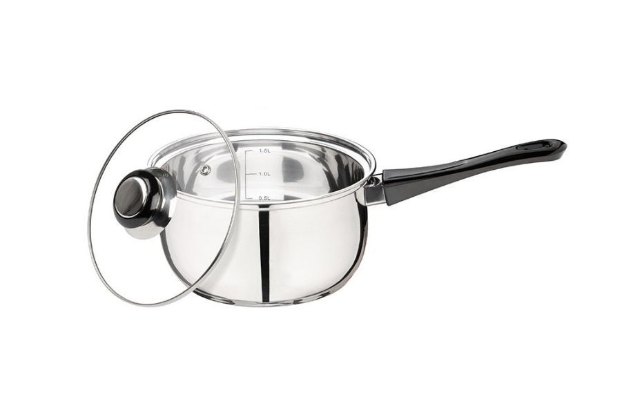 Ковш из нерж стали, объем 1,9 л, с бакелитовой ручкой и крышкой из жаропрочного стекла Материал: нерж сталь 201, бакелит, алюминий, 430 сталь, жаропрочное стекло. Толщина 201 стали 0,35 мм. Ручка на крышке бакелитовая с вставкой из нерж стали, боковая ручка — бакелитовая, зеркальная полировка корпуса внутри и снаружи. Отметки литража. Подходит для всех типов плит (дно 3 слойное: 201 сталь+1 мм алюминий+430 сталь (база для индукции)). Объем 1,9 л. Размер: 16*9,5 см. Упаковка: стикер+термоусадочная пленка. Диаметр дна: 13,5 см Диаметр крышки: 16,5 см