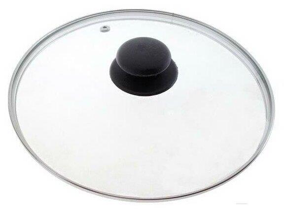 Материал: термостойкое стекло 4 мм, марка М1М4; нержавеющая сталь AISI 201; термостойкий пластик; Размер: диаметр 28см., высота 6,3см.; Индивидуальная упаковка: стикер; Можно мыть в посудомоечной машине. Изготовлено по ГОСТ Р519692002. Специальная термическая обработка стекла делает его ударопрочным и более устойчивым к изменениям температур, а метод штамповки обеспечивает большую легкость и прозрачность штампованных крышек по сравнению с литыми.