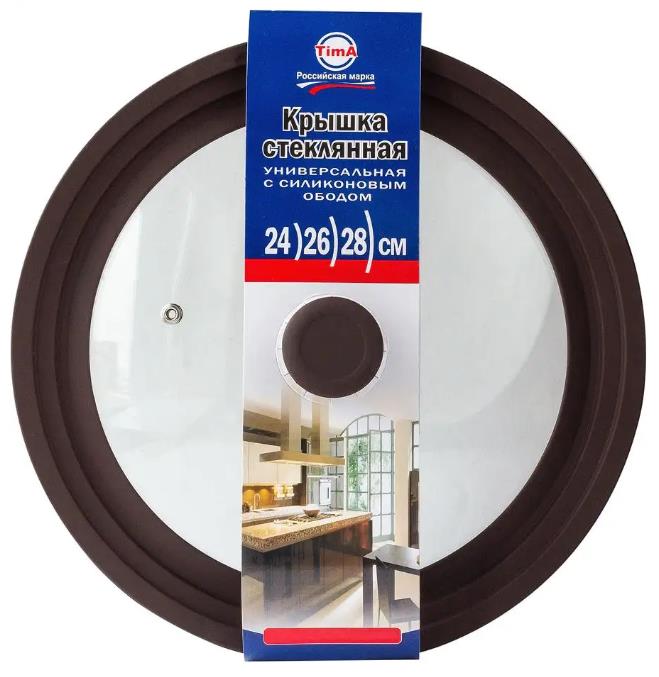 TIMA Крышка стеклян. с силикон/обод на 3 размера 242628 коричневая 48242628BR