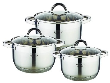 Количество предметов 6 пр. 4 л, 5.3 л, 6.7 л; 3 крышки Тип варочной поверхности индукционная, стеклокерамическая, электрическая, галогеновая, газовая, Материал корпуса сталь, Мерная шкала, Материал ручек сталь, Материал крышек стекло, С паровыпуском, Капсулированное дно,Мытьё в посудомоечной машине, Вес 4.1 кг Семистеповое дно; комбинированная полировка снаружи, зеркальная полировка внутри; клепаные ручки; диаметр: 200 мм, 220 мм, 240 мм; упаковка – подарочная коробка