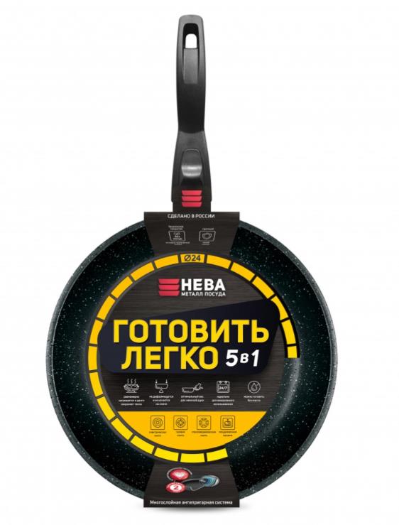 НЕВА МЕТАЛЛ ПОСУДА GL2024 а/пр литая 24см съемн/руч Готовить легко stone