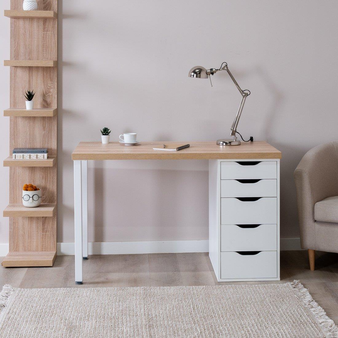 ГУД ЛАКК S00883 Ингар 1/5Т стол письменный 120x75x55, дуб беленый/белый (3 пак.)