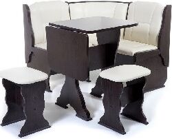 Кухонный уголок Нарцисс позволит оборудовать даже самую маленькую кухню максимально комфортно и удобно «для себя любимого». Все лучшее от мебельной фабрики Бител – качество, комфорт, ящики для хранения, столешница с покрытием пластиком, складной стол недорого в одном комплекте. На угловом элементе есть полочка. Этот комплект выполнен в варианте обивки Барнео Крем. Матовая экокожа, однотон. Цвет корпуса венге. В комплект кухонного уголка Нарцисс входит: стол раскладной СКР1, два табурета Тюльпан, кухонная скамья с размером 1100 мм на 1100 мм, с внутренними ящиками под сидением. Габариты высота: 1100 мм. Габариты ширина: 1100 мм. Габариты глубина: 840 мм. Стиль: Классика. Материал каркаса: ЛДСП. Обивка: экокожа. Цвет обивки: crem. Ящик для хранения: да. Цвет корпуса: Венге.