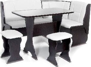 Кухонный уголок ОРХИДЕЯэто практичное решение для обустройства кухонных пространств. Этот комплект включает в себя обеденный стол, две табуретки и комфортабельное мягкое сиденье, создавая идеальное место для приема пищи, общения и расслабления. Просторный обеденный стол: Комплект включает в себя обеденный стол, который подходит для комфортного размещения 2х человек. Этот стол идеально подходит для завтрака, легких обедов или ужинов вдвоем. Изготовлен из качественных материалов, обеспечивая долгий срок службы. Мягкое сиденье и табуретки комфортабельны и устойчивы, обеспечивая удобство и безопасность. В комплект кухонного уголка Орхидея входит: стол обеденный со столешницей в цвет корпуса с термостойким покрытием, размеры: ш1000*г580*в750 мм. два табурета Тюльпан, размеры: ш380*г300*в450 мм. кухонная скамья, размеры: ш (1480 х 1080)*г530*в880 мм, с внутренними ящиками для хранения под сидением