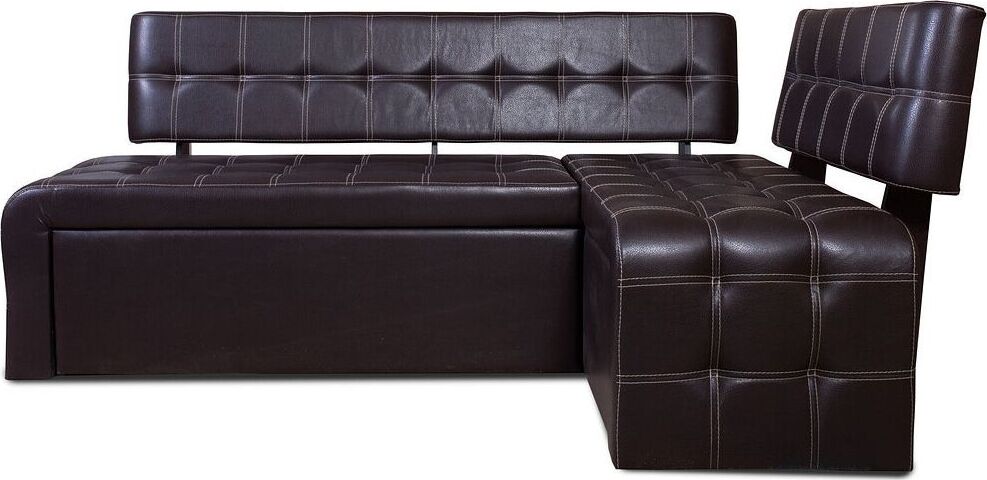 КУХОННЫЙ УГЛОВОЙ ДИВАН СО СПАЛЬНЫМ МЕСТОМ . Сборка универсальная: (направо и налево) Сиденье малой скамьи поднимается на газлифте, под ним короб для хранения. Под большой скамьей выдвигается ящик, который также образует ящик для хранения. Спальное место образуется за счет подушек, которые кладутся сверху на выдвижной ящик большой скамьи. Размер: ШхГхВ (2000х1320х840). Размер спальн.места (1800х965)мм. Цвет: Умбер (тёмнокоричневый)