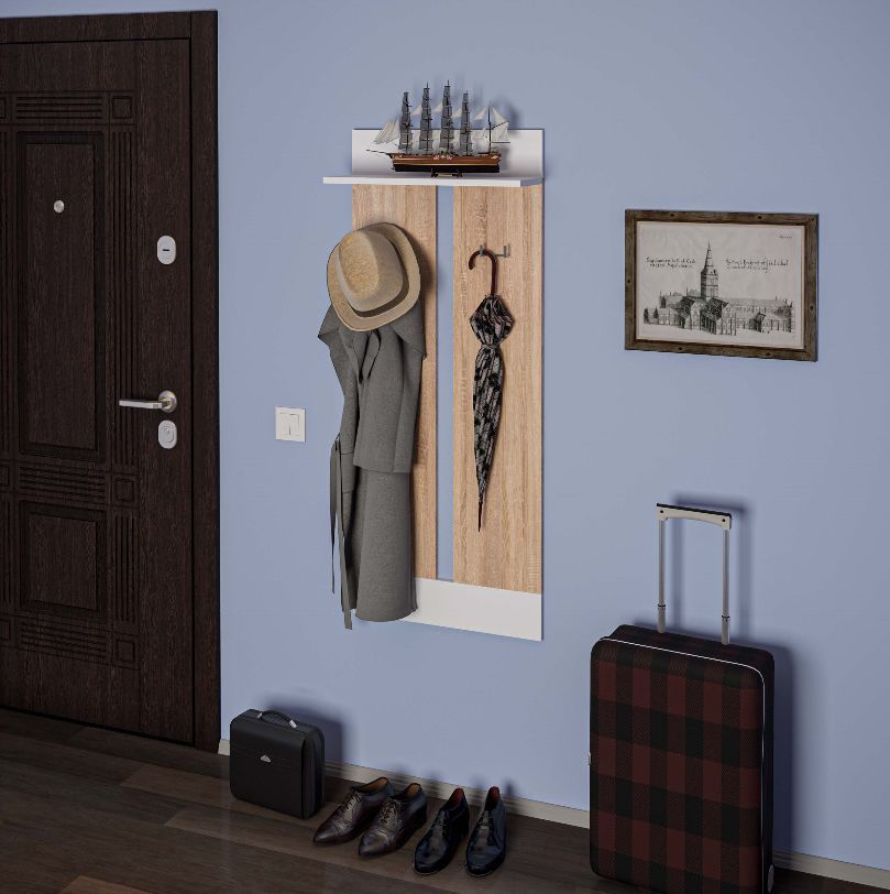 МЕБЕЛЬКОМПЛЕКС НОРДИК Вешалка навесная исп. 2 Дуб сонома/Белая Аляска