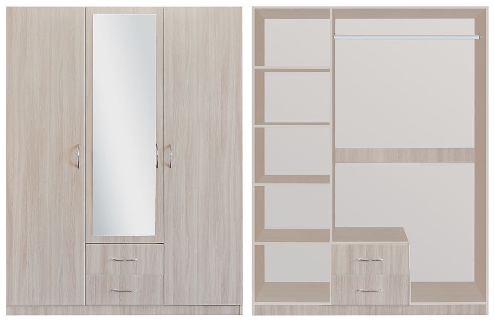 ЭЛЕГИЯ КМ.006.021400А Шкаф 3х дверный с зеркалом 1500х560х1990 Ясень шимо светлый/Ясень шимо светлый (3 кор)