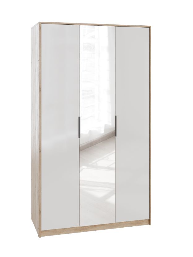 МЕБЕЛЬКОМПЛЕКС Нордик Шкаф 3х створчатый с зеркалом Дуб сонома/Белая Аляска