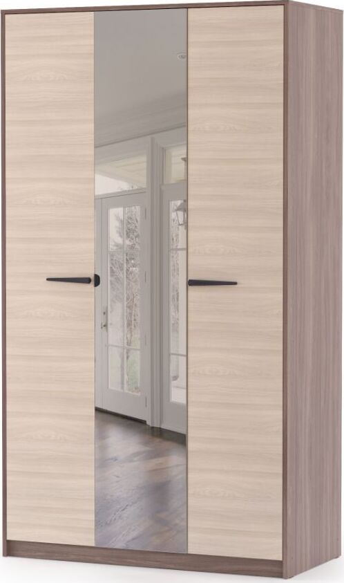 МЕБЕЛЬКОМПЛЕКС Оптима Шкаф 3х створчатый с зеркалом Шимо темный/Шимо светлый