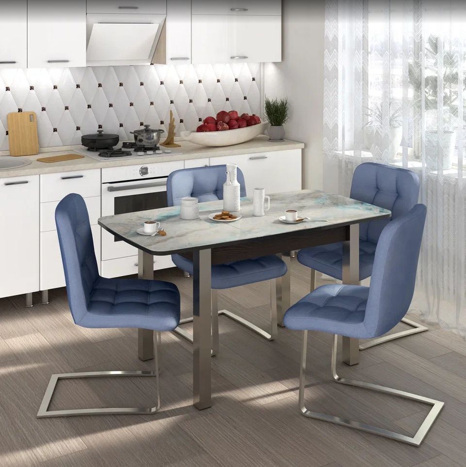 Раскладной стол на кухню необычной расцветки. Стол ФЛОРИДА раздвижнойстолешница изготовлена из ЛДСП 16 мм, сверху стекло 4 мм с фотопечатью. Механизм трансформации «Бабочка», позволяющий увеличить длину столешницы до 1420 мм. Ножки квадратные хромированные. Подстолье выполнено из ЛДСП в цвете: венге. Размеры: 1050(1420)х750х750 мм
