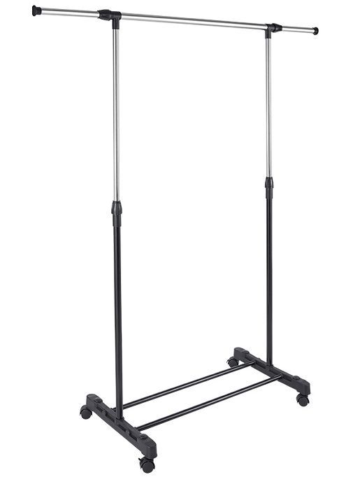 Вешалка напольная предназначена для размещения на ней одежды, обуви и предметов обихода в жилых помещениях, может использоваться для обустройства гардеробных комнат Имеет раздвижную систему с регулировкой высоты перекладины Надежная устойчивая конструкция Колеса со стопорным механизмом обеспечивают легкое перемещение, а также возможность надежно зафиксировать вешалку в выбранном месте Материал каркаса: нержавеющая сталь, сталь с декоративным покрытием Комплектация Длина 80 см Регулируемая высота 90155 см Ширина 43 см Количество перекладин 1 перекладина Максимальная нагрузка на перекладину 20 кг