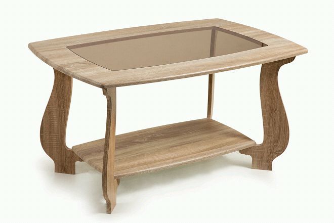 Журнальный стол СЖ23 с тонированным стеклом смотрится элегантно, благодаря извилистым ножкам. У столика есть нижняя столешница, которую можно использовать для хранения журналов.Столешница и полка имеют толщину 16мм и выполненны из МДФ, ножки стола ЛДСП. Размер ШхГхВ (980х650х520) мм Стиль: Современный. Материал каркаса: ЛДСП. Поверхность: МДФ/стекло без рисунка. Форма стола: прямоугольный. Раскладной: нет. Вес: 14.28 кг. Цвет корпуса: Дуб Сонома