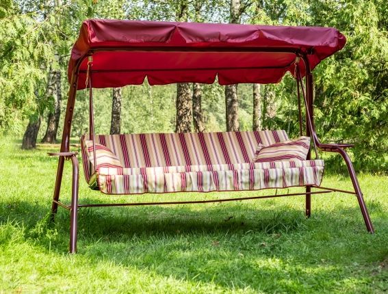 Габаритные размеры изделия (ДхШхВ) 2310х1260х1478 мм, размеры сиденья,спинки и тента (ДхШ) сиденья: 1706х497 мм, спинки: 1706х497 мм, тента: 1840х1020 мм, Каркас: труба стальная Ф 45х1,4мм; полимерное покрытие, Мягкий элемент: ткань 45% п/э – 55% хлопок, плотность 108111 г/м2 , наполнитель мягкого элемента (листовой поролон 50мм), наполнитель подушек (крошка поролона). Подушки – 2шт. Тент: ткань с водоотталкивающей отделкой 100% п/э плотность 120 г/м2, Регулировка спинки: осуществляется звеньями цепи на требуемый угол наклона. Размеры упаковки: 526х186х1966 мм, Максимальная нагрузка 210 кг, Вес изделия: 34,6 кг.