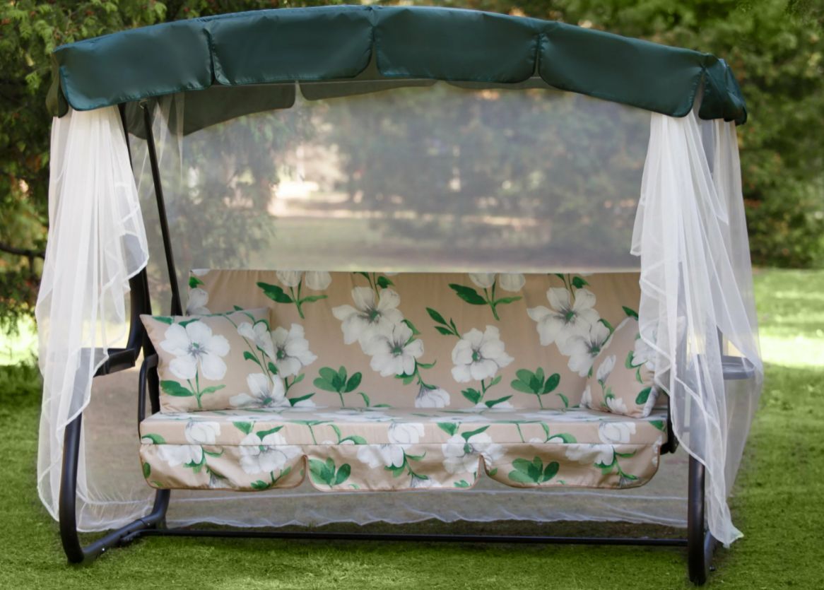 Габаритные размеры изделия (длина х ширина х высота), мм: 2365х1380х1815. Габаритные размеры сиденья,спинки и тента (длина х ширина), мм: размеры сиденья: 1782х532. размеры спинки: 1782х532. размер тканевого тента: 2130х1430. Максимальная нагрузка, кг: 280. Каркас: труба стальная O 51х1,4мм; полимерное покрытие; полка 2 шт. Регулировка спинки: осуществляется звеньями цепи на требуемый угол наклона, с возможностью фиксации в разложенном положении. Размеры упаковки, мм: 626х300х2025. Вес изделия: нетто, кг – 51,1. брутто, кг – 54,5.