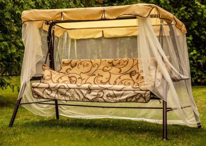 Габаритные размеры сиденья,спинки и тента (длина х ширина), мм: размеры сиденья: 1706х497 размеры спинки: 1706х497 размер тканевого тента: 1840х1020 Максимальная нагрузка, кг: 210 Каркас: труба стальная O45х1,4мм; полимерное покрытие; полка 2 шт. Мягкий элемент: ткань 45% п/э – 55% хлопок, плотность 108111г/м2, наполнитель мягкого элемента (листовой поролон 50мм+синтепон), наполнитель подушек (крошка поролона).Основание спанбел, декор тафтинг. Подушки – 2шт. Тент с сеткой противомоскитной: ткань с водоотталкивающей отделкой 100% п/э плотность 80г/м2. Противомоскитная сетка пришита к тенту. Регулировка спинки: осуществляется звеньями цепи на требуемый угол наклона.