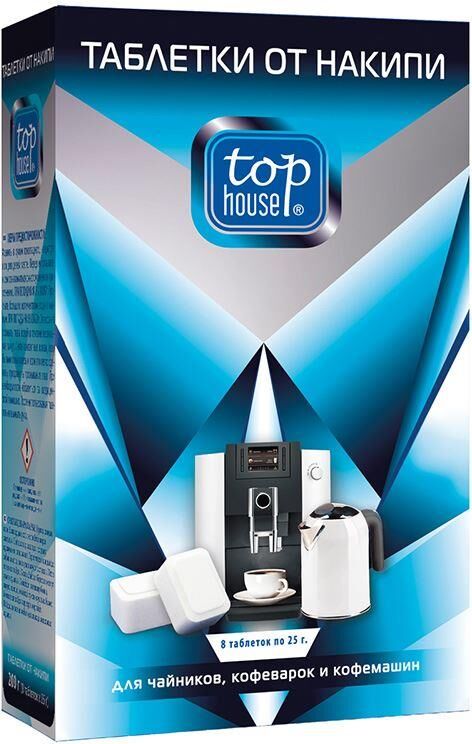 TOP HOUSE Таблетки от накипи для чайников, кофеварок и кофемашин, 8 шт. х 25 г (392753)