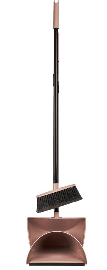 Набор для уборки коллекция Vogue, большой совок, с крышкой, бежевый, с длинными ручками, 135х275х1260 Длинные ручки совка и сметки позволяют не наклоняться при уборке. Мягкая кромка совка плотно прилегает к полу, не давая проскальзывать пылинкам под него. Высокие края совка Vogue препятствуют разлетанию собранного мусора. При переноске совка, закрывается крышка, мусор не видно и он не разлетается. Совок из прочного долговечного пластика можно использовать как в помещении, так и на улице. Щетка с длинной ручкой Vogue с плотной набивкой притягивает пыль и мусор, удерживая пыль среди ворсинок, оставляя поверхность пола абсолютно чистой. Щетка расположена под небольшим углом к креплению ручки, что позволяет без труда заметать пыль под мебелью. Щетка и совок устойчивы к бытовой химии и горячей воде. Щетка удобно закрепляется на ручке совка Voguel и компактно хранится в вертикальном положении или с совком на крючке.