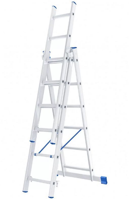Алюминиевая трехсекционная лестница Pоссия 3x7 ступеней СИБРТЕХ 97817 используется при покраске фасада дома, монтировании электроосветительных приборов, работе в саду и т.д. Имеет четыре различных положения и подходит для выполнения работ на высоте до 3.6 м. Защиту от скольжения на рабочих поверхностях обеспечивают заглушки и широкая траверса. Технические характеристики Россия 97817 Тип трехсекционная Материал алюминий Рабочая высота, м 3,6 Max рабочая нагрузка, кг 150 Общая длина, м 3,07 Min длина, м 1,98 Max длина, м 3,07 Ширина лестницы, мм 445 Количество ступеней, шт 3х7 Размер в сложенном состоянии, см 198х44.5х13.5 Регулировка опоры угловой траверсы нет min длина в сложенном состоянии, м 1.98 Вес, кг 9 Габариты, мм 1980х445х135 Толщина профиля 0.7