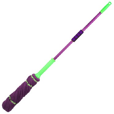 Швабра со сменной насадкой из микрофибры Ручка металлическая, окрашенная (удачное сочетание зеленого и фиолетового цветов выигрышно смотрятся на полке). Швабра снабжена механизмом отжима (насадка скучивается и отжимается, при этом нет необходимости ее снимать и пачкать руки!) Цвет фиолетовый/зеленый Длина швабры: 120см Материал: металл, пластик, микрофибра (100% полиэстер)