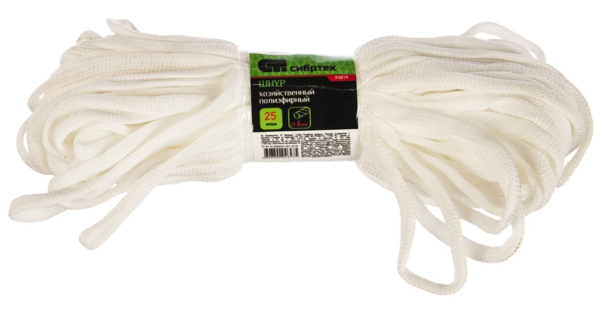 СИБРТЕХ Шнур хозяйственный, D 6 мм, L 25 м, полиэфирный Россия 93819