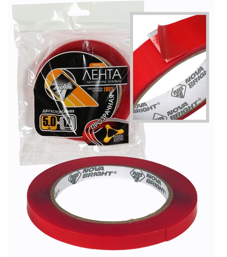 NOVA BRIGHTFUSION двухсторонний красный + прозрачный (акриловая основа), 12 мм х 5м 46668