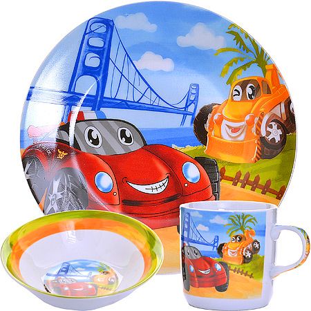 Предметы набора выполнены из высококачественной керамики и декорированы красочным рисунком. Изделия легкие и функциональные. Такой набор обязательно понравится вашему ребенку, потому что теперь у него будет своя собственная посуда с ярким и оригинальным рисунком. Набор посуды для детей включает в себя три предмета: суповую тарелку, обеденную тарелку и кружку. Набор упакован в красочную, подарочную упаковку. Подходит для мытья в посудомоечной машине. Для детей от 3х лет.