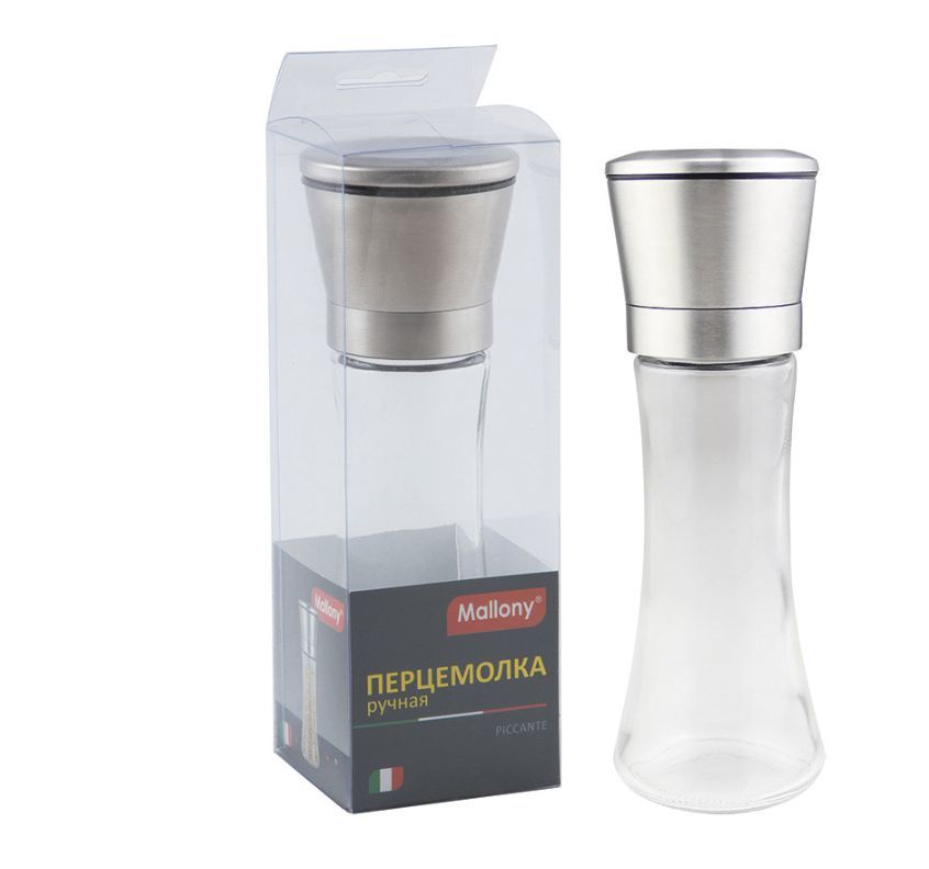 MALLONY Перцемолка ручная PICCANTE, рр 6,5*19 см, стекло, нерж сталь (003593)