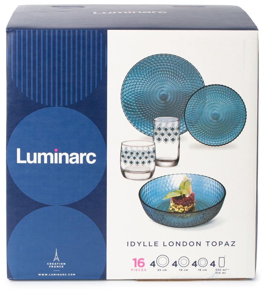 Сервиз Luminarc Louison London Topaz Луизон Лондон Топаз, 16 предм + стаканы Ромб Топаз 310 мл. Рассчитан на 4 персоны: Тарелка десертная 19 см 4 шт. Тарелка обеденная 25 см 4 шт. Тарелка глубокая 20 см 4 шт. Стакан низкий Ромб Топаз 310 мл 4 шт. Материал: ударопрочное стекло. Страна производства: Франция.