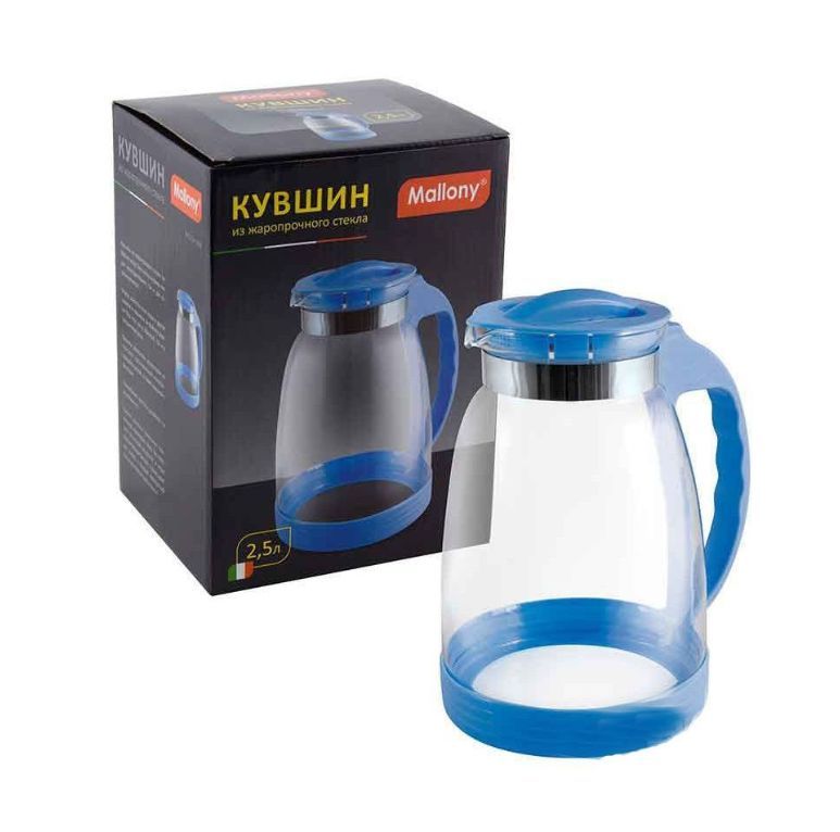 MALLONY Кувшин BROCCA2500, объем: 2,5 л, из жаропрочного стекла, с пластик ручкой, синий дизайн (910116)