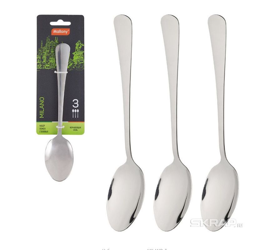 ложки столовые 3 шт материал: нержавеющая сталь длина 20,5 см ширина 4,5 см толщина стали 2,00 мм высококачественная ручная полировка упаковка: картонная подложка