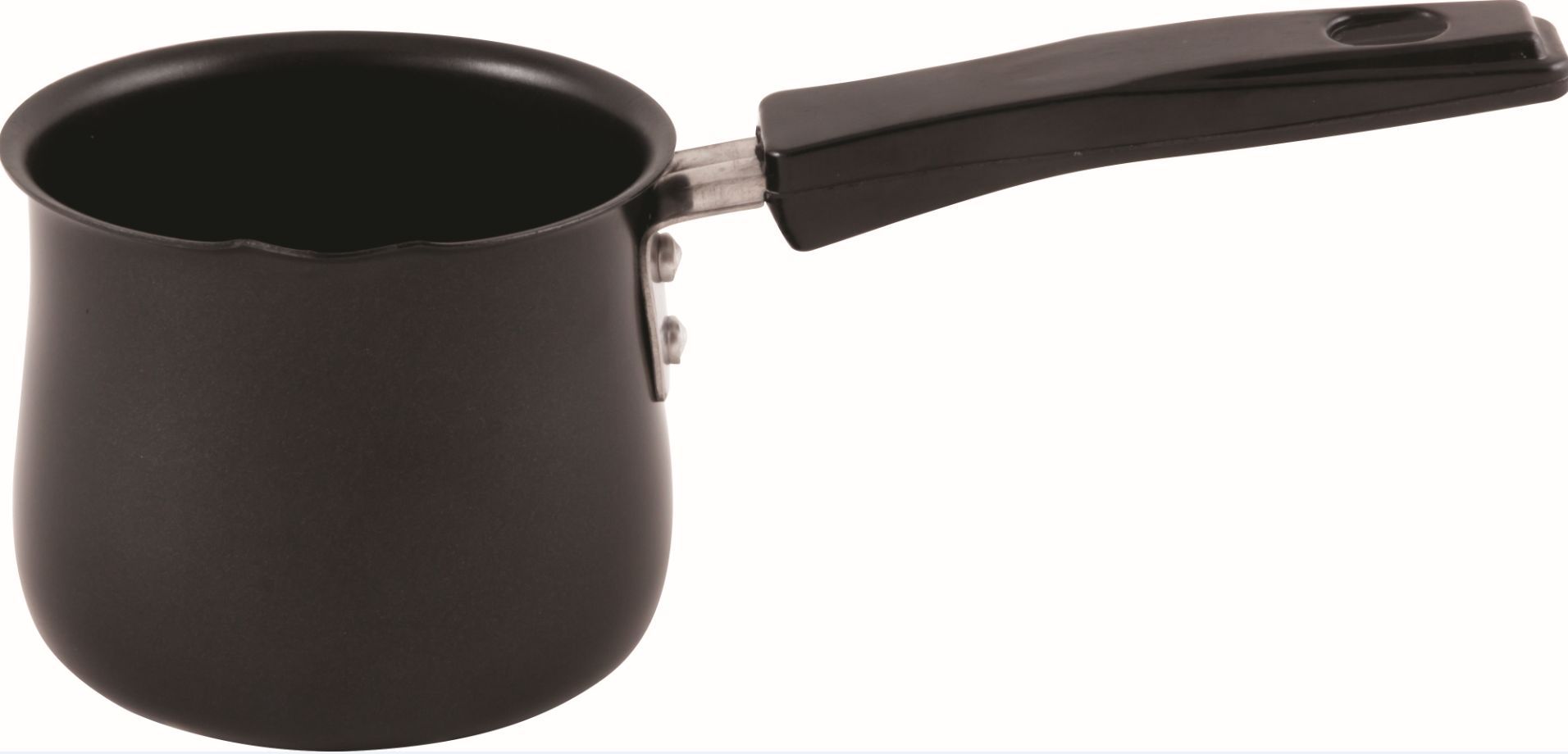 Турка из углеродистой стали с антипригарным покрытием Объем: 750 мл. Толщина: 0,8 мм. Колво слоев внутреннего покрытия 2 слоя. Размер: диаметр 10.4 х высота 9.5 см. Ручка бакелитовая. Материал: углеродистая сталь Упаковка: хенгтег, стикер, пакет (из пузырчатой пленки). Подходит для всех типов плит ( включая индукционные)