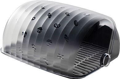 Материал: Полистирол, полипропилен Размер: 34,52 х 27,29 х 16,41 см Индивидуальная упаковка: термоусадка+стикер Цвет: прозрачный, черный. Поверхность: глянцевая Изделие: решеткавкладыш предохраняет сдобу от налипания крошек и позволяет воздуху циркулировать под содержимым, что значительно улучшает качество его хранения; прозрачная крышка с рисунком представляет собой подвижный элемент, который бесшумно сдвигается назад, экономя место; конструкция легко разбирается для ухода; выдерживает многократные открываниязакрывания; мойка в посудомоечной запрещена.