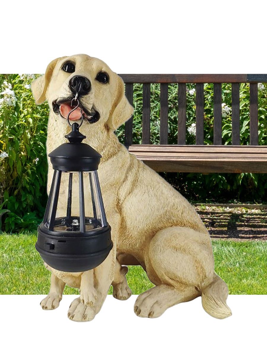 Cадовая фигурка "Собака" на солнечной батарее. Заряжается от солнца в течение дня и включается автоматически с наступлением темноты с помощью датчика света. Фигурка выполнена из полистоуна искусственный камень, сочетающий в себе все качества природного материала. Данный материал отличается повышенной прочностью, износостойкостью и устойчив к воздействию влаги, ультрафиолетовых лучей и других разрушающих факторов внешней среды. Размер фигурки 31х29,2х11,4 см